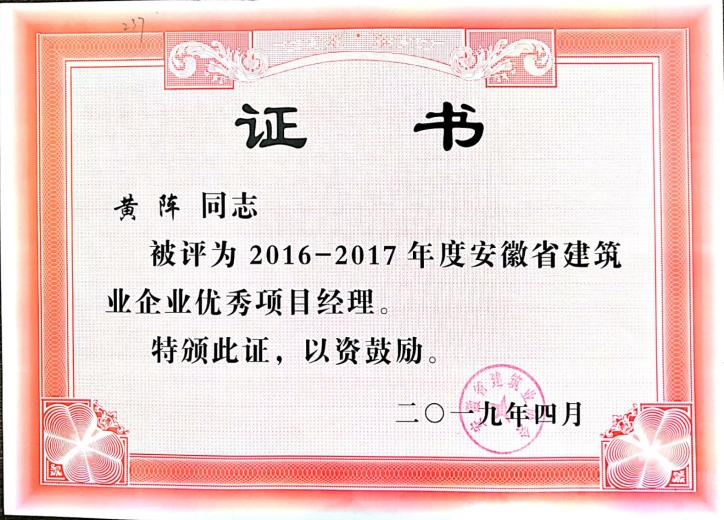 2016-2017年安徽省建筑业优秀项目经理——黄阵