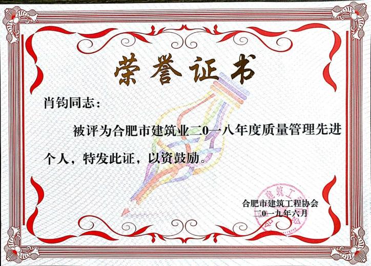 2016-2017年安徽省建筑业优秀项目经理——俞宏波
