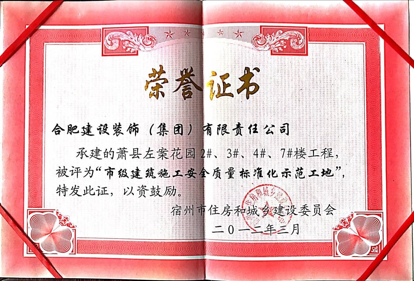 >2012年市级建筑施工安全质量标准化示范工地--萧县左岸花园