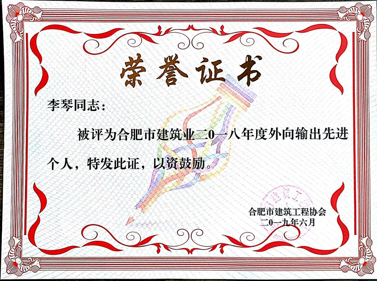 李琴2018外向输出先进个人