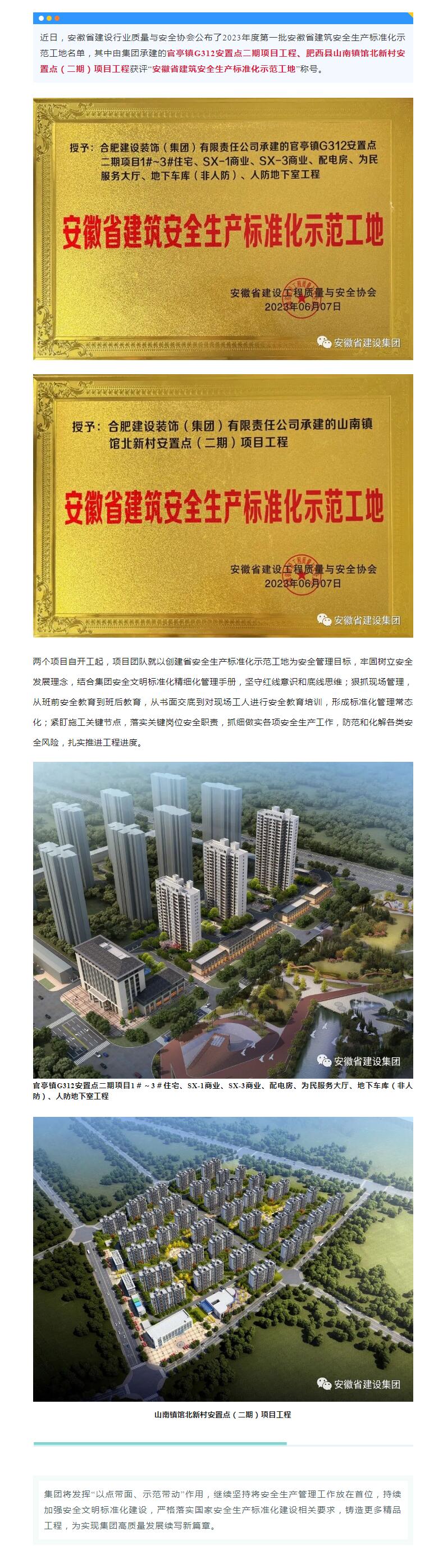 >集团两项目荣获“安徽省建筑安全生产标准化示范工地”称号