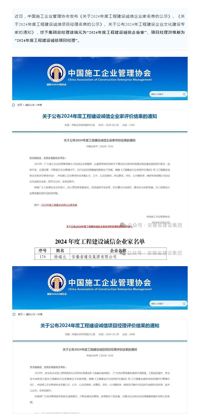 >集团员工获中国施工企业管理协会多项荣誉表彰